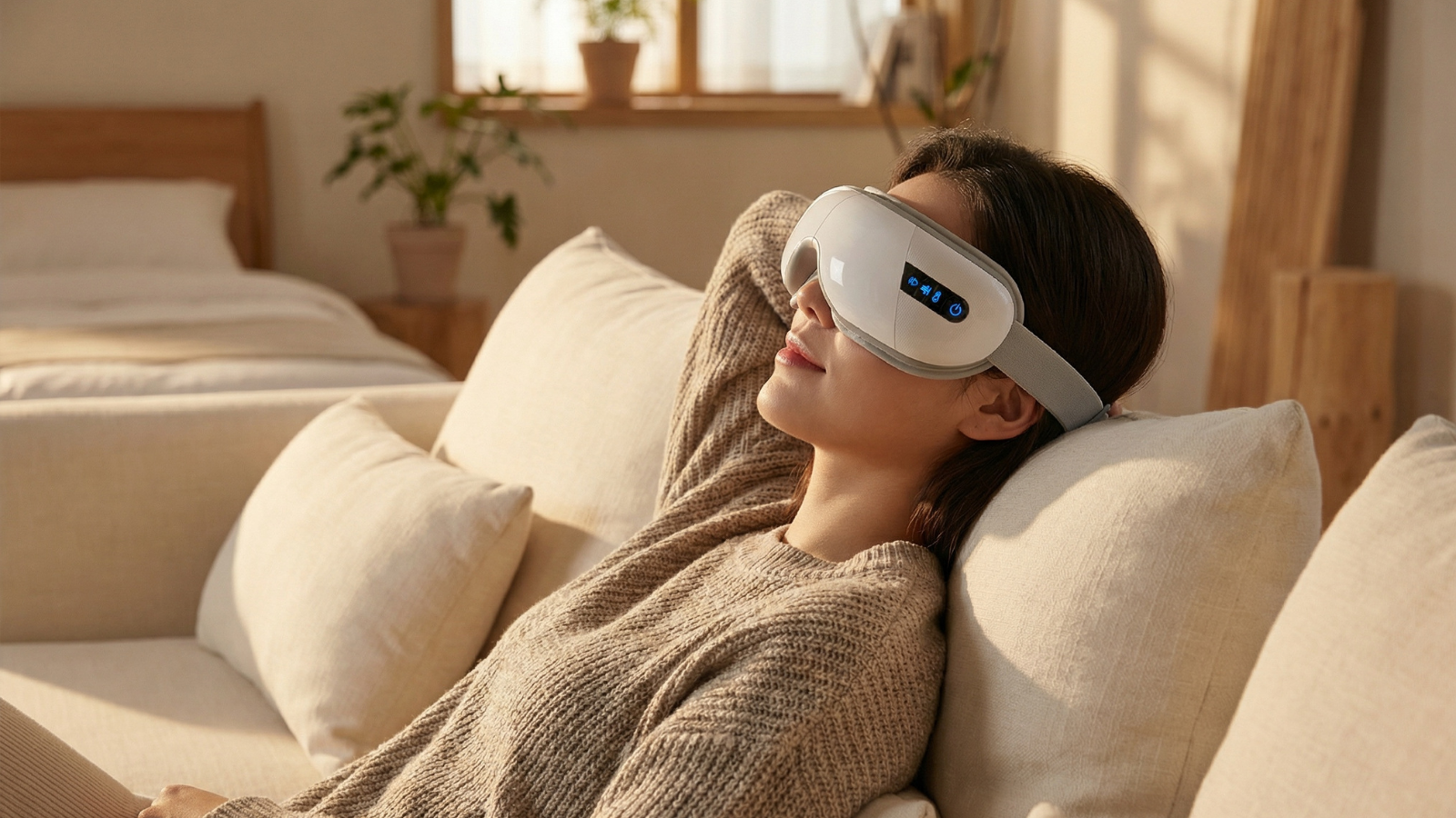 The compression feature creates gentle rhythmic pressure around the eye area, which helps the experience feel more immersive and relieving than basic vibration alone.
